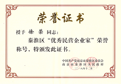 同時(shí),會(huì)議還表彰了一批行業(yè)示范引領(lǐng)作用突出、勇于創(chuàng)新、具有良好的道德品行和社會(huì)形象的優(yōu)秀民營(yíng)企業(yè)家。金鴻裝飾董事長(zhǎng)徐榮先生榮獲“秦淮區(qū)優(yōu)秀民營(yíng)企業(yè)家”稱號(hào)。