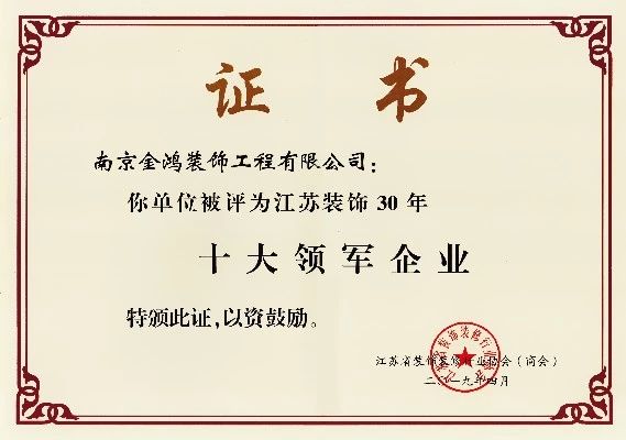 江蘇裝飾30年十大領(lǐng)軍企業(yè)