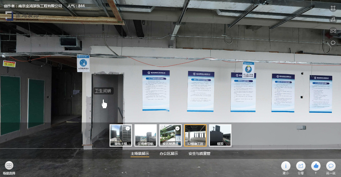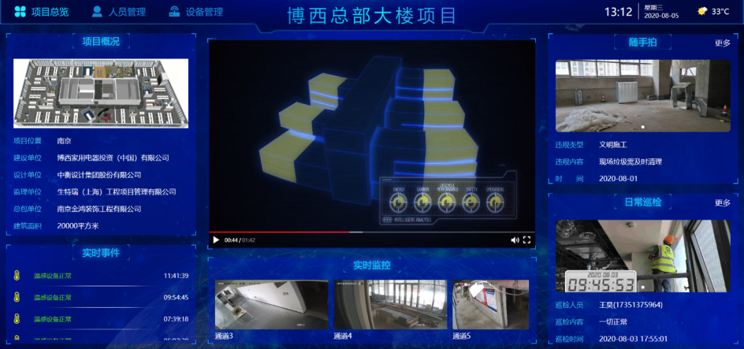 此次“云觀摩”,以視頻和360全景形式納入“江蘇省建筑施工安全管理系統(tǒng)”安全教育資源庫,全方位、多維度、立體化、實時地展示我司在疫情防控、工程質(zhì)量與安全管控、智慧化工地建設(shè)和BIM運用等方面的成果;展示了智慧工地管理體系,智慧防疫、人臉識別、煙霧預(yù)警、溫度預(yù)警、臨邊防護預(yù)警等安全管理先進系統(tǒng),集中供各地線上實景觀摩與交流學(xué)習(xí)。