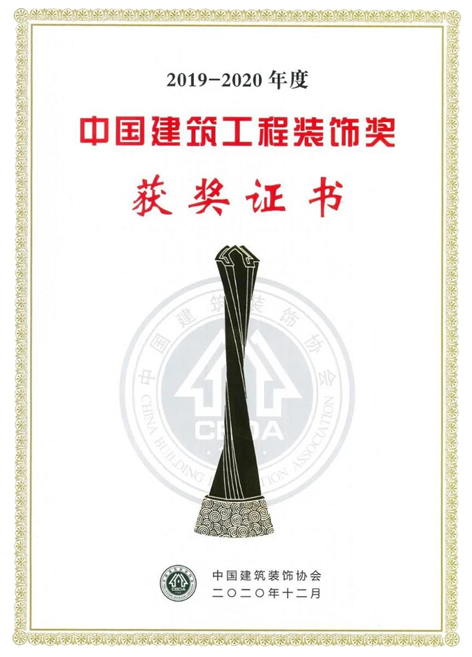 中國(guó)建筑工程裝飾獎(jiǎng)是經(jīng)國(guó)務(wù)院批準(zhǔn)保留的全國(guó)性行業(yè)質(zhì)量最高獎(jiǎng),也是裝飾行業(yè)唯一經(jīng)國(guó)務(wù)院批準(zhǔn)的國(guó)家級(jí)獎(jiǎng)項(xiàng)。榮譽(yù)的獲得,是業(yè)界對(duì)金鴻裝飾的褒獎(jiǎng),是每一個(gè)金鴻人的驕傲。